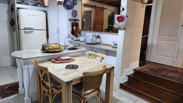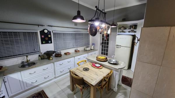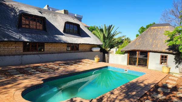 The covered Lapa with a built-in braai next to the sparkling swimming pool creates the perfect setting for hosting gatherings or simply relaxing in the sun.
