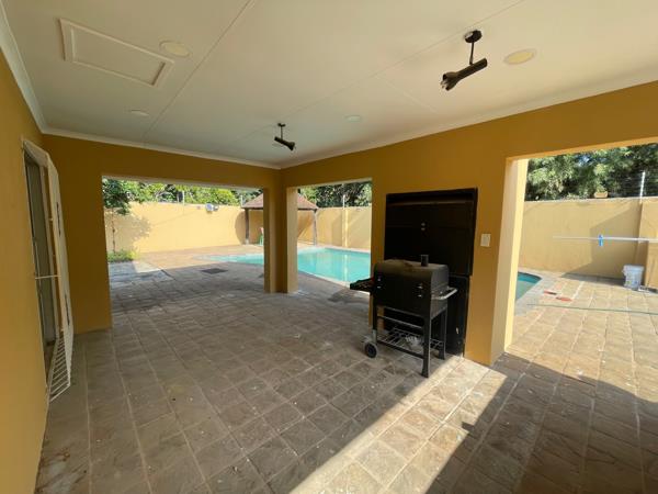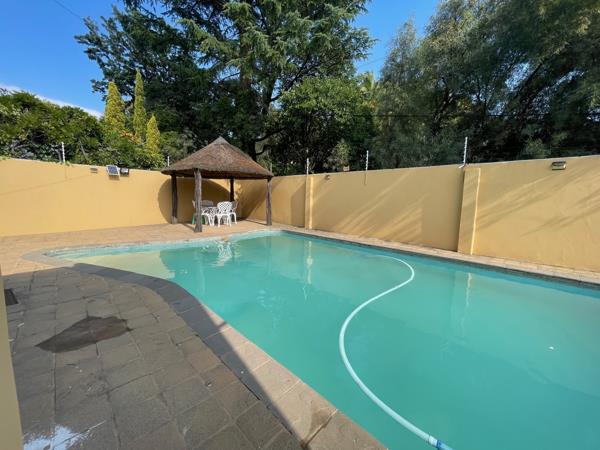 Outside you have a built-in braai area, a separate toilet and a beautiful pool. The garden is large, and includes a shed. 3 Garages, with additional cupboard space and 2 entrances to the property.