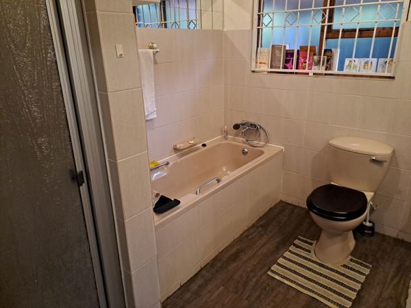 The interior of the property consists of a spacious open-plan kitchen, living room and dining room. The kitchen comes equipped with a gas stove and granite tops while the living room offers a fireplace for the cold months ahead. The main bedroom offers lots of cupboard space. Two of the bedrooms are also fitted with built-in desks and cabinets in addition to the built-in wardrobes. As an added bonus the garage has been converted into a spacious fourth bedroom or living area.