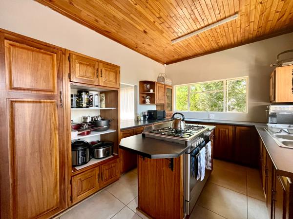 Kitchen: Well-equipped kitchen with gas hob, center island and ample cupboard space. Separate laundry area with direct access to a private washing line.