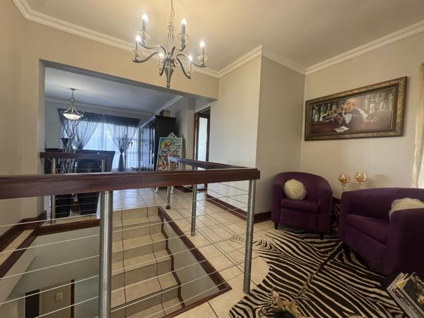 Beautiful open-plan kitchen with separate scullery, laundry opening to a balcony with seating and dinning arrangement. The upper lounge has side to side stack away doors Opening onto a balcony with the most spectacular views! Also, on the upper second floor you have a study and guest toilet. On the middle first floor you have a private lounge and four good-sized bedrooms with three bathrooms on the ground floor you have a one-bedroom flatlet, and a good-sized domestic room with bathroom. The house offers a single garage with shade carport for 2,5 cars.