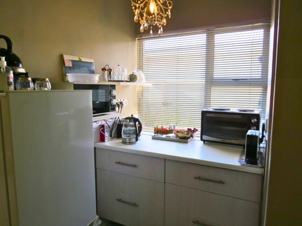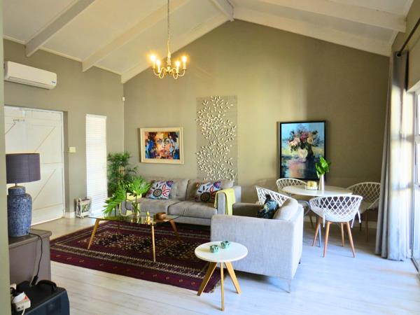Apartment 2 can be accessed from the main house via the main passage or a private side entrance from its patio, and offers a flexible layout. It features a large bedroom with space for a lounge area, a kitchenette that is large enough to be converted into an additional bedroom or lounge, and a full modern bathroom. This apartment also includes air conditioning. The private patio and its own entrance make it suitable for guests or long-term letting.