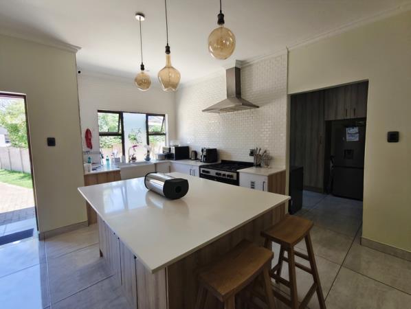 Contemporary and conventional design, featuring stylish tiled flooring throughout and elegant plaster finishes. The home boasts two versatile lounges, and an additional loungebar entertainment area with a guest toilet providing abundant space for relaxation, family and friends.  A well-appointed modern open plan kitchen serves as the heart of the home, ready for new adventures and memories.