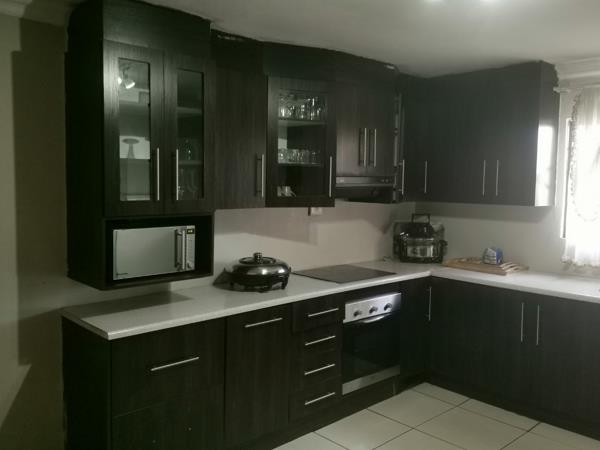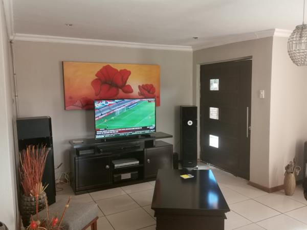 It Consist of Three bedrooms, two full bathrooms, the main bedroom is en suite, bedrooms have built-in cupboards and laminated floors. The spacious kitchen opens into the dining room and a TV lounge with tiled floors. The kitchen offers enough cupboard space for easy living.