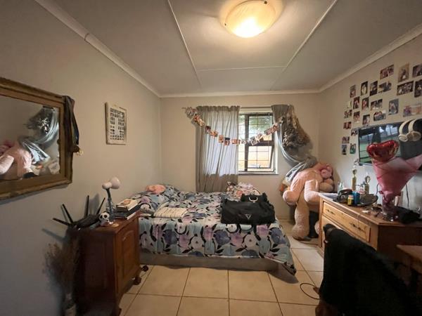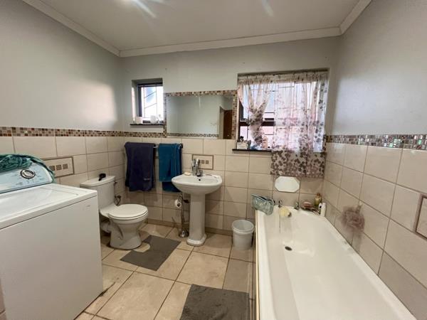 The generous lounge area is styled in a semi-open plan format and seamlessly integrates with the dining space, creating an ideal environment for entertaining guests or enjoying quality time with loved ones. The recently renovated kitchen features sleek built-in cupboards and tiled floors, combining functionality with modern aesthetics.