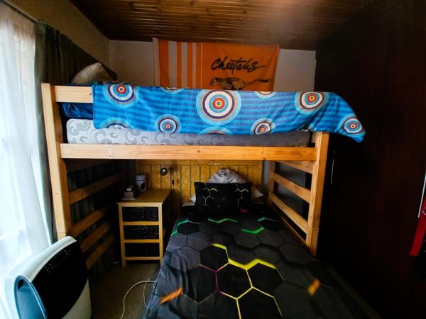 The property includes a self-contained 1-bedroom flatlet with a solar geyser, providing an excellent rental income opportunity. Multiple geyserstwo gas and one electricensure energy efficiency and comfort. Outside, a wooden deck overlooks the swimming pool, creating a perfect spot to relax. The fully fenced yard also features two Wendy houses for extra storage and a grey water system to keep the garden thriving.