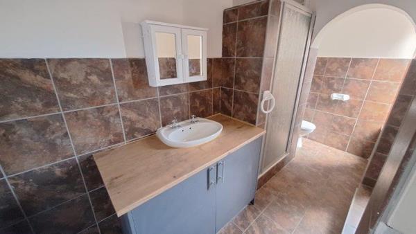 Newly renovated kitchen with ample built-in cupboards. Space in the kitchen for a dishwasher and washing machine.