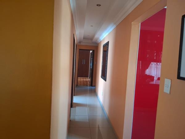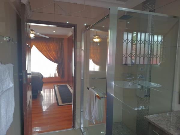 The main bedroom is spacious and the en-suite bathroom is modern with shower, toilet, basin, a mounted mirror and a fitted heater for the cold Bloemfontein winters.
