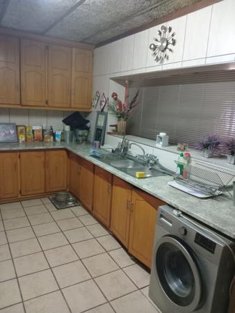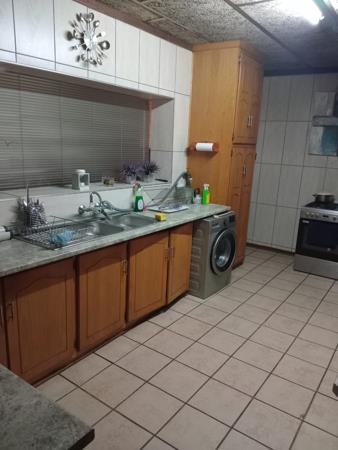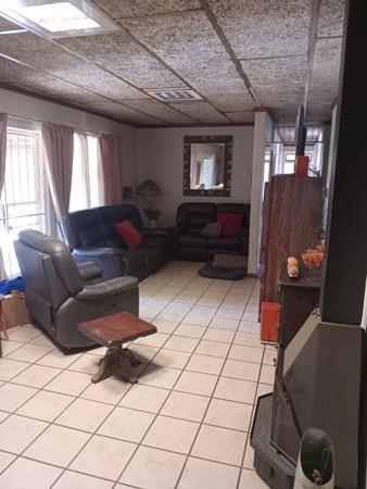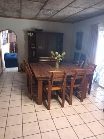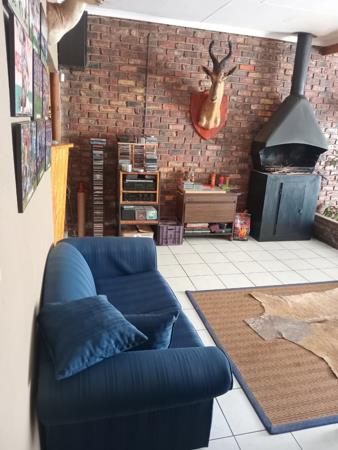 The kitchen is designed with practicality in mind, featuring built-in cupboards along with a separate laundry area. The living spaces are designed to flow seamlessly, with a cozy lounge that includes a fireplace and opens out to the thatched patio through sliding doors. The dining room also has direct access via its own sliding door, leading to the enclosed thatched lapa, which is equipped with a built-in braai, making it perfect for entertaining family and friends throughout the year.
