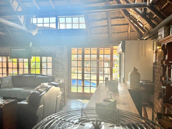 Four bedrooms with two full bathrooms (one en-suite to main bedroom), beautiful open plan kitchen/dining room with lots of build in cupboards and laundry. Study room, 3 Wendy houses, an outbuilding that accommodate three vehicles. The borehole provides for the garden and domestic use. This property offers extensive potential!