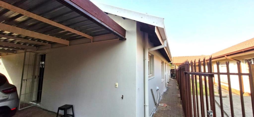 The units are separated by a door, providing privacy, and offer flexible living options. One unit includes a small garden, while both units share a carport with space for 4 vehicles.