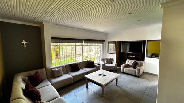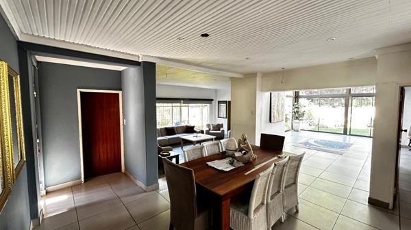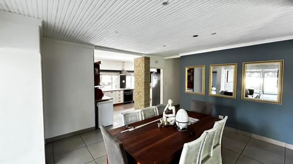 Year-Round Braai: Covered patios with a built-in braai overlook the sparkling swimming pool set in a lovely, tree-filled garden.