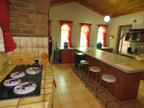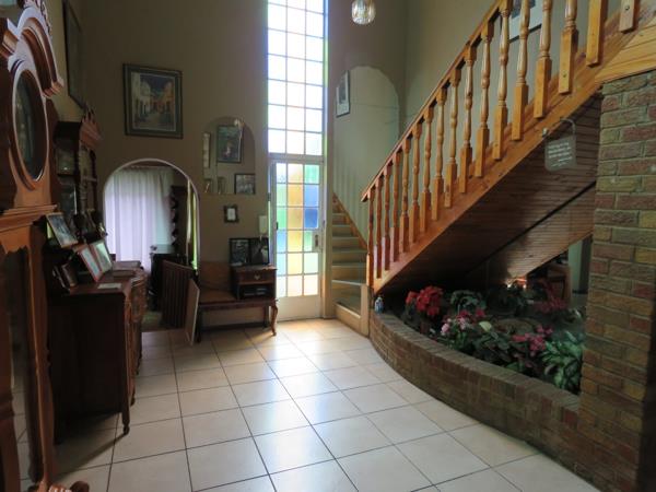 Perfect for entertaining, the property features a spacious braaiplayroom with a built-in braai and louvre roof, a sparkling swimming pool, a Lapa, a courtyard, storeroom, and a servants toilet. Practical extras include an alarm system, a Jo-Jo tank connected to the house, a borehole, a lock-up garage accommodating four vehicles, Fibre internet, and pre-paid electricity.