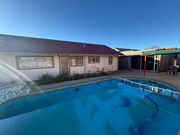 Outdoors, the property offers a double garage and double carport, along with a garden, swimming pool, and an entertainment area complete with a built-in braai ideal for casual weekends with family and friends. An added bonus is another carport as well as a 5000l water tank with a pressure pump. This home just needs a little bit of love and attention to shine again.