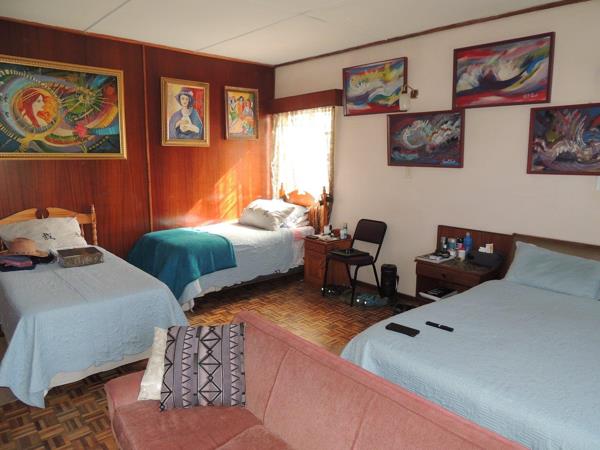The sixth bedroom is in the large garden flat underneath the beautiful trees. This flatlet consists of a bedroom, a bathroom with a shower and an open plan kitchen and lounge. This flat also have a private garden.