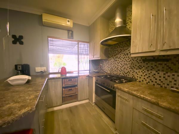 The spacious lounge flows seamlessly into a sleek, modern kitchen, complete with ample cupboards, a breakfast nook, and a hobideal for everyday living and entertaining.