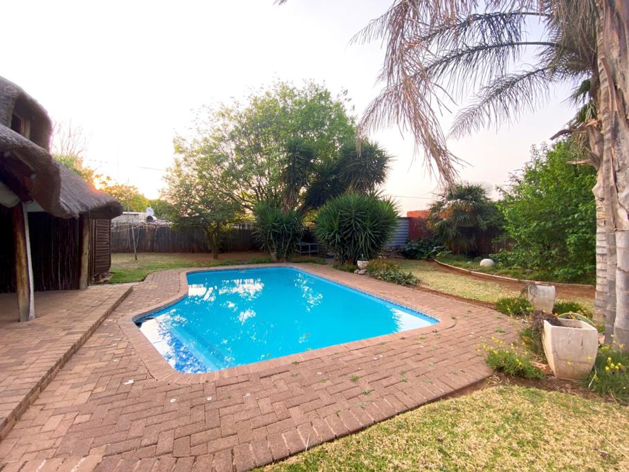 Outdoors, a thatched lapa with a built-in braai overlooks the sparkling swimming pool, creating the ultimate entertainment space.