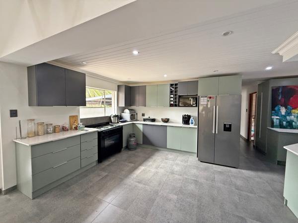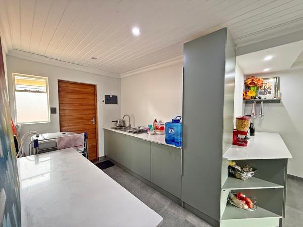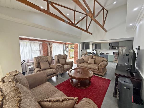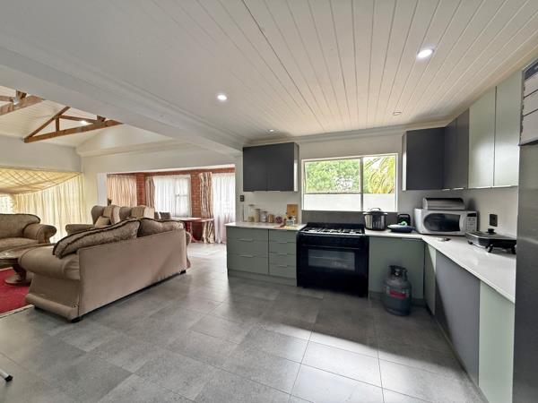 The home features an open-plan lounge and dining area, creating a warm and inviting atmosphere ideal for family living. The kitchen is fitted with built-in cupboards and includes a convenient scullery for added practicality.