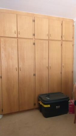 The three spacious bedrooms boast carpets, built-in cupboards, and blinds, with two bedrooms featuring custom-designed extra cupboards for added storage. The third bedroom has laminated flooring, built-in cupboards, and an en-suite bathroom with a shower, basin, and toilet.
