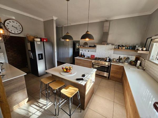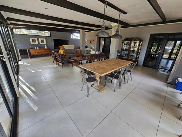 A sunlit living room and a 70 m2 stoep with a built-in braai and aluminum stacker doors that open onto the garden provide ample space for relaxation and entertainment.