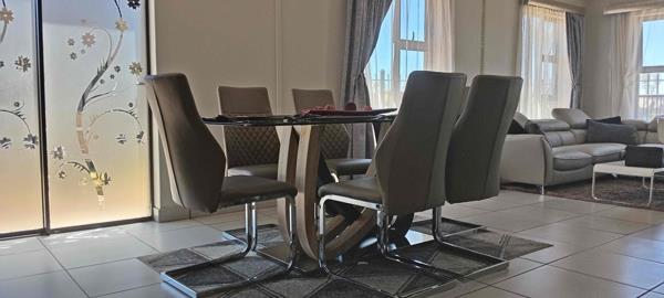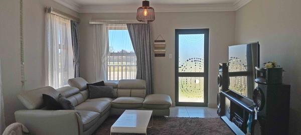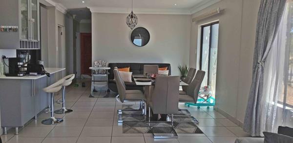 The home is fully tiled throughout. Downstairs features a cozy living area overlooking the dining area, creating a warm and functional space ideal for family living. The modern, well-equipped kitchen offers ample built-in cupboards and is complemented by a separate storage room. A guest bedroom and bathroom are conveniently located on the ground floor.