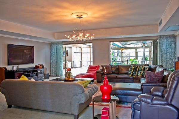 A second lounge area is also available downstairs and flows to the indoor pool. The entertainers ideal scenario with stack-up doors creating seamless space from the lounge to the pool. The biggest bonus of this home is the indoor pool with glass ceilings, a built-in-bar and built-in-braai. Any entertainers dream. The glass ceilings opens the space to view the skylight and makes the room feel even bigger than it already is.