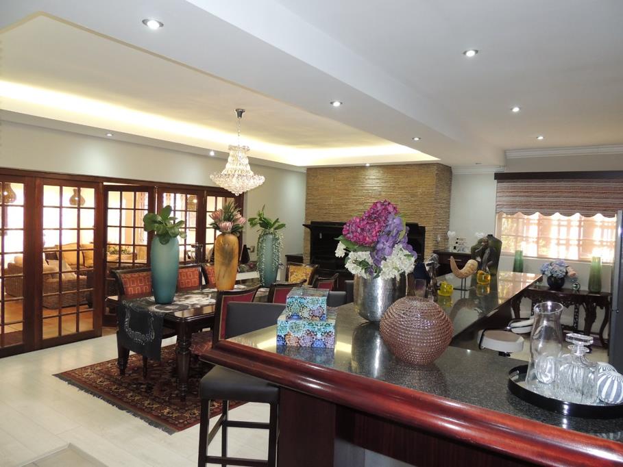 For those with a passion for entertaining, this home leaves no stone unturned. The well-appointed gourmet kitchen is a culinary masterpiece, equipped with top-of-the-line appliances, custom cabinetry, and a large centre island perfect for hosting intimate gatherings or preparing exquisite feasts. Adjacent to the kitchen, a formal dining room next to a large bar and built-in braai awaits, creating a refined atmosphere for special occasions. There is also a separate family room with a private office that looks out onto the pool and garden. As you step outside, a meticulously landscaped garden surrounds a sparkling swimming pool, creating a tranquil retreat for relaxation and leisure. Whether you prefer soaking up the sun on the expansive patio or enjoying alfresco dining with loved ones, inside the outdoor glass-enclosed dining space, the outdoor living spaces of this property are designed to accommodate your every desire - even sundowners around a BOMA fire.