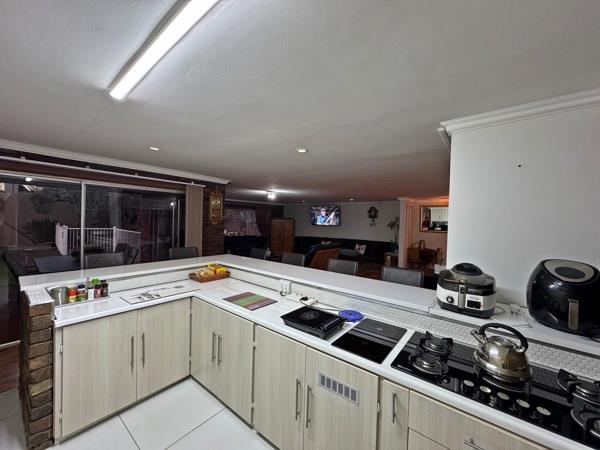 The built-in braai area adds to the entertainment potential of the property, creating a welcoming atmosphere for gatherings. For added convenience, a well-appointed scullery provides ample space for essential appliances such as a dishwasher, washing machine, and tumble dryer.