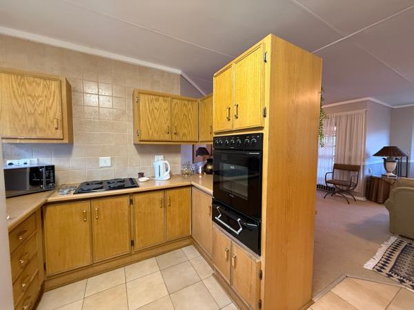 The kitchen is fitted with built-in cupboards, an eye-level oven, and a stove. The property features 2 spacious bedrooms with built-in cupboards and 2 bathrooms, including a wheelchair-friendly guest bathroom and an en-suite in the main bedroom.Additional features include a double automated garage with laundry facilities and a beautiful garden perfect for relaxation. The complex offers a community hall for socializing and events, daily meals available for ultimate convenience, and a medical and frail care facility on site for peace of mind.