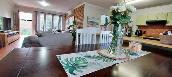 The thoughtful layout features three well-proportioned bedrooms, two bathrooms including an ensuite, and an open-plan kitchen that connects effortlessly to three entertainment areas. The expansive private garden is truly remarkable offering far more space than typical townhouses, complete with an inviting outdoor braai spot for entertaining. Families will appreciate the complex''s dedicated children''s facilities, including a separate play park and children''s pool, ensuring safe, supervised fun for little ones. Practical additions include a scullery for convenient meal preparation, built-in cupboards for organized living, and garaging for two vehicles.
