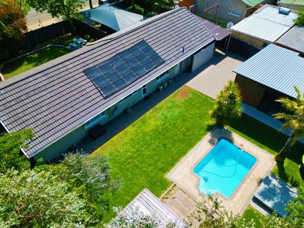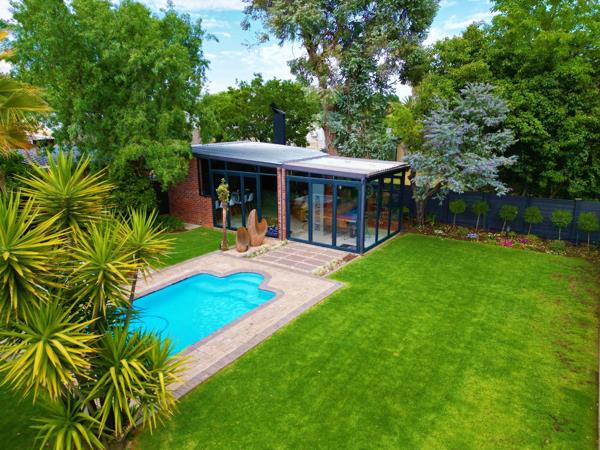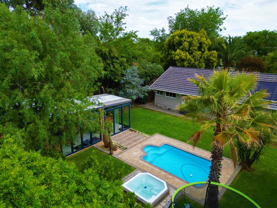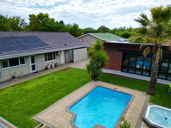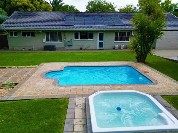 In the kitchen the aluminum back door opens onto a lush garden, revealing a private oasis with a jacuzzi, pool, and the ultimate indoor/outdoor braai, bar, and entertainment area. It has aluminum stack sliding doors, and it''s equipped with its own small geyser for your outdoor/indoor kitchen & barideal for al fresco entertaining.