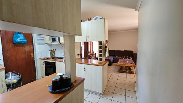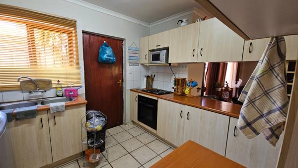 Experience serene living in this picturesque two-bedroom townhouse, nestled in a well-manicured complex. The open-plan living and dining area boasts bright natural light, airy feel, and sleek tile flooring, perfect for unwinding. The kitchen is thoughtfully equipped with essentials, including a freestanding oven.