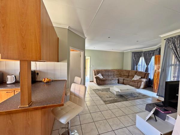 The open-plan kitchen and dining area provide a seamless flow, perfect for both everyday living and entertaining.