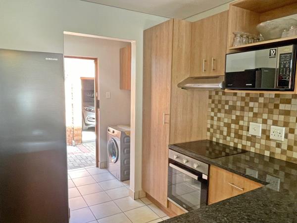 This townhouse offers tiled open-plan living areas, a modern kitchen featuring granite tops, a breakfast nook, and a separate scullery enough space for a double fridge, and dishwasher. The open-plan living areas lead to a beautiful, pet-friendly, walled garden. Three spacious carpeted bedrooms featuring two modern bathrooms main en-suite.