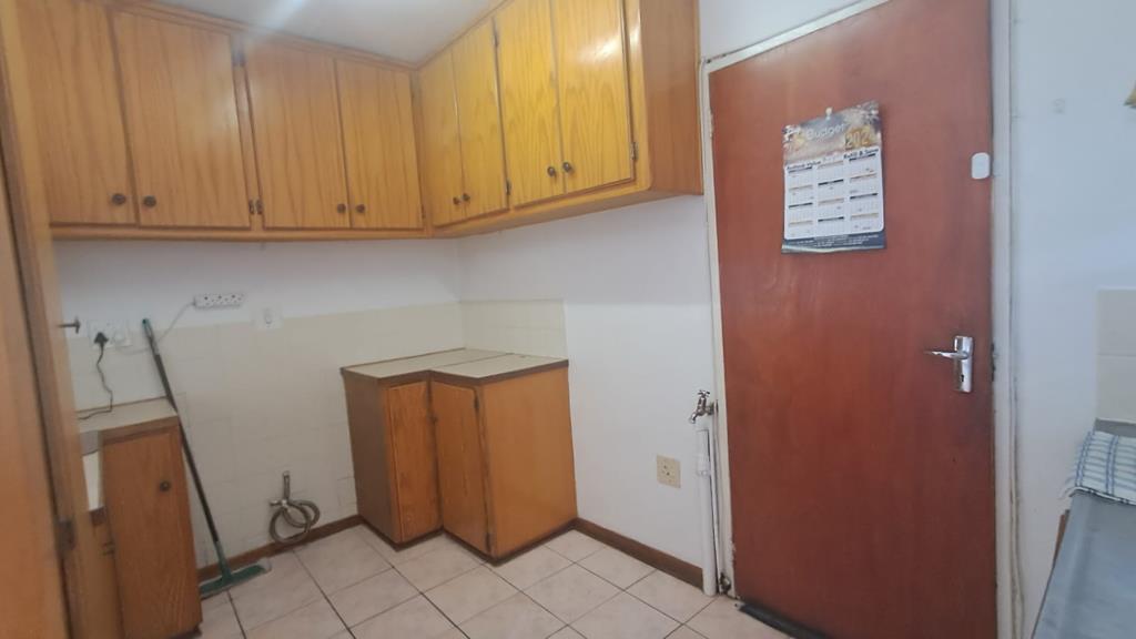 Built-in cupboards, space for dishwasher or washing machine, and curtain rails