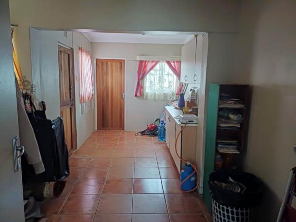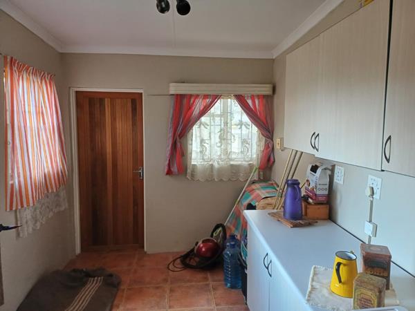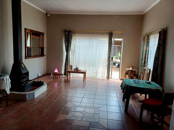 The living area opens with sliding doors to the entertainment space and swimming pool. The farm-style lapa is well-designed to prevent rain entering, making it perfect for year-round gatherings. The fibre-tech swimming pool (7m x 3m) is in good condition, with a working pump and sand filter.