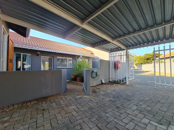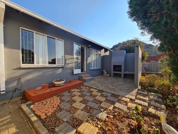 This property boasts a kitchen, a single garage with an electric door, and a secure locked carport, ensuring convenience and peace of mind. Step outside to find a delightful courtyard and a beautifully landscaped garden featuring an outdoor braai area, ideal for those summer gatherings.