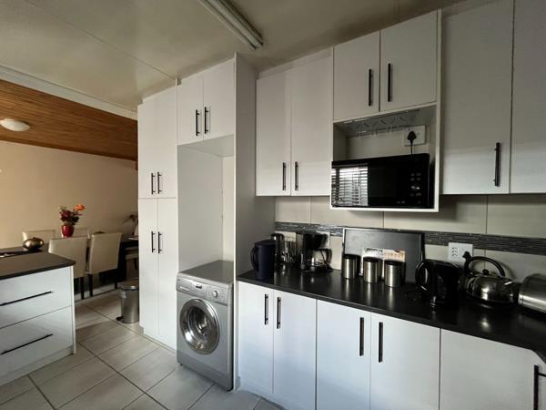 The townhouse boasts a beautiful open-plan living area, with a large lounge and dining room thats perfect for a full dining suite. The modern kitchen is well-appointed with plenty of cupboard space.