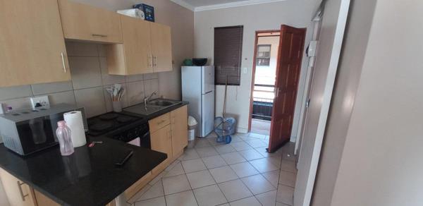 This bachelor flat offers a open plan bedroom, kitchen and bathroom. Shower, toilet and basin. Kitchen with a under cover stove and hob. Ample cupboards for storage. Perfect location. Secure, save with 24 hours surveilance cameras. Neat complex with a perfect location.