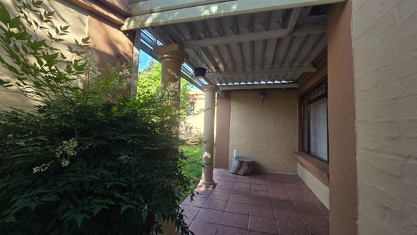 Double lock up garages with auto garage door. Spacious garden with covered louver roof. Backyard with built-in braai.