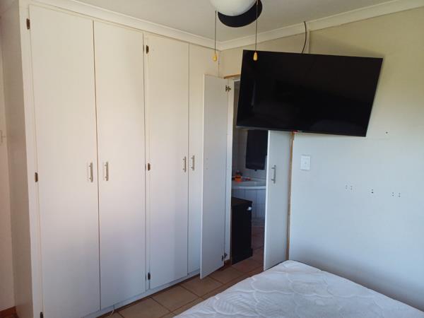 Outside is a nice and cozy recreation area with a built inn braai. The courtyard is spacious and is secured by all round fencing and electric gate. Parking is in a single garage with a roll up door with additional parking for 3/4 vehicles in front.
