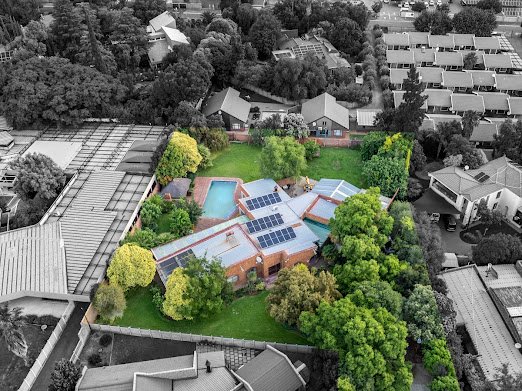 The house accomodates 4 garages and enough parking space for 4 additional vehicles. Extras incude 18 solar panels and an invertor, a borehole and the garden has a complete irrigation system installed.