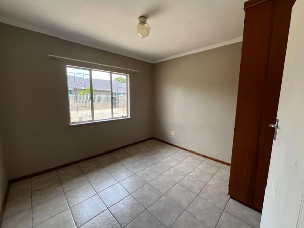 The spacious kitchen provides ample cupboard space and a practical layout for everyday use. Outside, youll find a small private garden with an area that can easily be converted into a cosy braai spaceperfect for entertaining or relaxing.