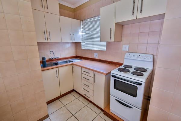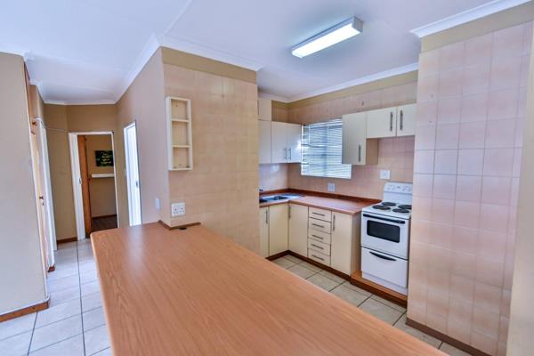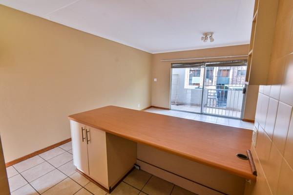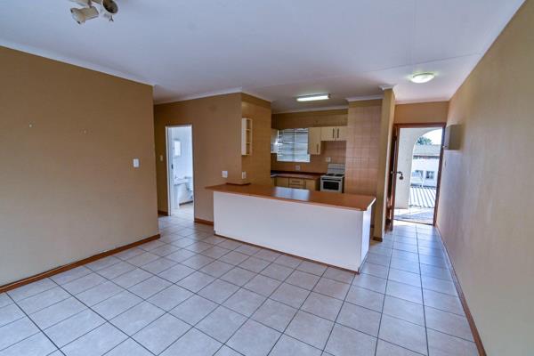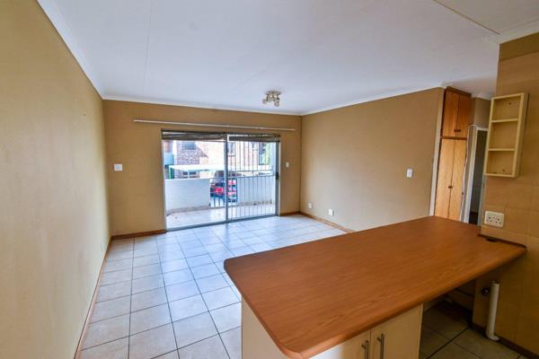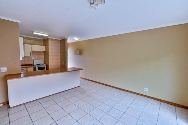 Top floor unit townhouse in a newly repainted complex with a communal pool and entertainment area with changing rooms and bathroom facilities perfect for a special birthday pool party function on request. The very neat open-plan living area opens up to an enclosed patio tiled balcony. Very practical kitchen with ample built-in cupboards, breakfast nook, washing machine connection, and loose standing stove.