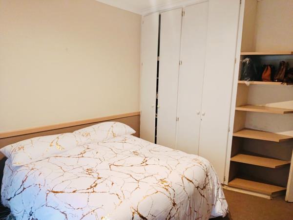 The unit features two generously sized bedrooms with built-in cupboards, providing both comfort and functionality. The neat bathroom is thoughtfully designed to cater to everyday needs.