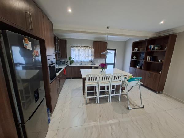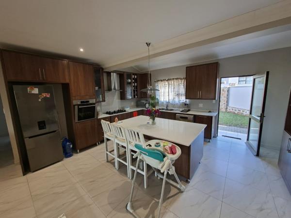 Step into this stunning 4-bedroom townhouse, which seamlessly blends modern luxury with practical comfort. Every bedroom is beautifully finished with tiled floors and ample built-in cupboards, offering space and style for the whole family. The main bedroom with a full En-suite bathroom and a walk-in closet, a second full en-suite bathroom, and a third bathroom with a shower, toilet, and basin, ensuring convenience for everyone. The ultra-modern design and spotless presentation make this home move-in ready unpack and enjoy! Upstairs, youll find a versatile loft area with elegant laminated floors, its own bathroom (shower, toilet & basin) and a private balcony the perfect space for an entertainment lounge, guest suite, extra bedroom, or even your very own Airbnb setup! Lovely enclosed braai area, stack doors perfectly positioned to overlook the peaceful greenbelt, doors opening up onto balcony ideal for relaxing weekends or entertaining friends. From here, step seamlessly into the inviting family room, designed in an open-plan layout with the modern, stylish kitchen. The kitchen is a true showpiece, featuring ample built-in cupboards, a gas hob, eye-level electric oven, extractor fan, and a central island that makes cooking and socializing effortless.