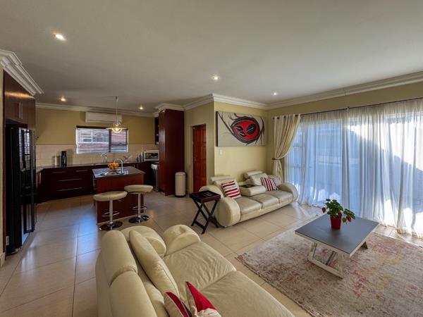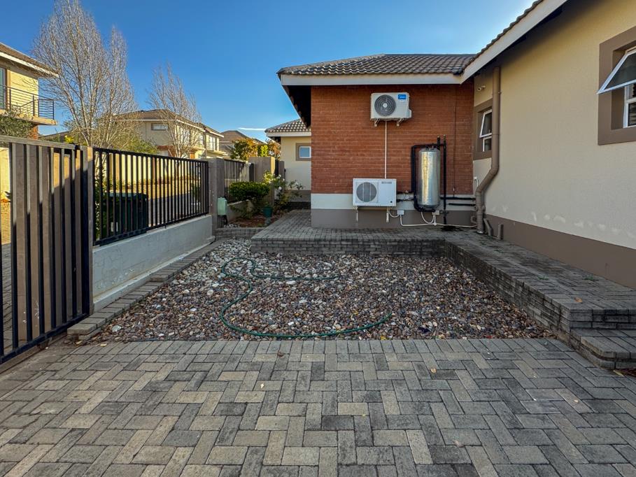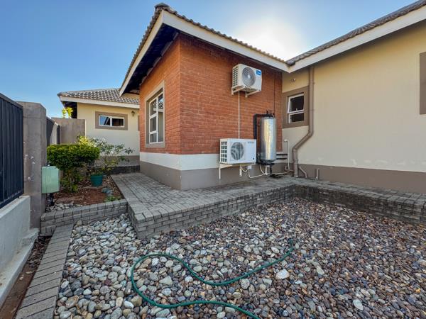 Fully airconditioned throughout, enjoy year-round temperature control in every room. Open plan tiled lounge and dining area flowing seamlessly into a modern kitchen. The kitchen includes granite countertops, a double-door built-in oven, space for a double-door refrigerator, and plumbing for a dishwasher or washing machine. Both bathrooms feature double basins, a bath, shower, and toilet offering space and luxury. Enclosed patio with built-in braai perfect for entertaining or relaxing in the sunroom. Aluminium windows and sliding doors with quality tiled flooring and stylish downlights throughout. Double electric garage with direct access into the home for added convenience and security. Wrap around garden with access on both sides and two small lockable gates to safely contain pets.