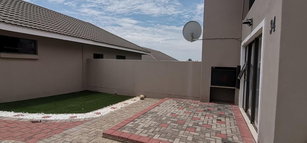 3 Bedrooms lots of cupboard space, 3 bathrooms ensuite, spacious open plan living room, kitchen with built-in cupboards and built-in stove. Neat, modern and fully tiled. Two of the bedrooms with balconies. Prepaid electricity, fibre and double garage. Braai area with built-in braai. Well established security complex. 24 Hour security guard, electric fence and cctv cameras. Close to Preller Square, Northridge Mall, Sentraal School and Brebner School.