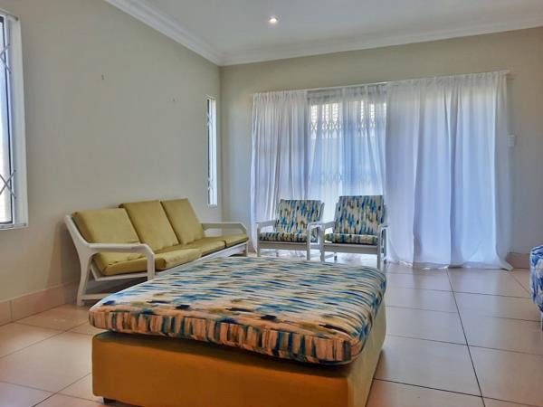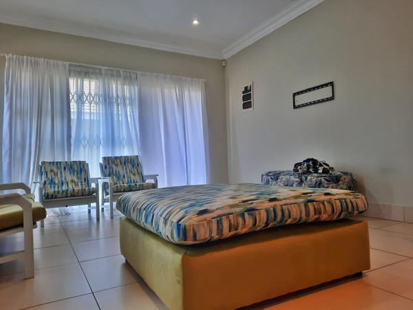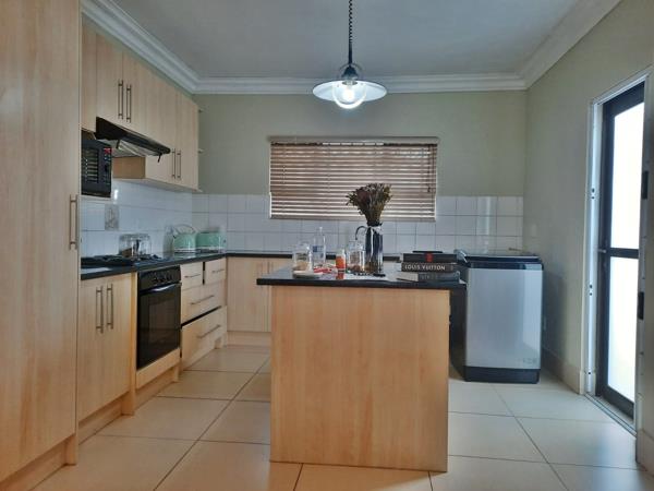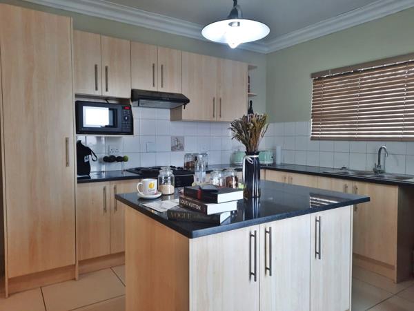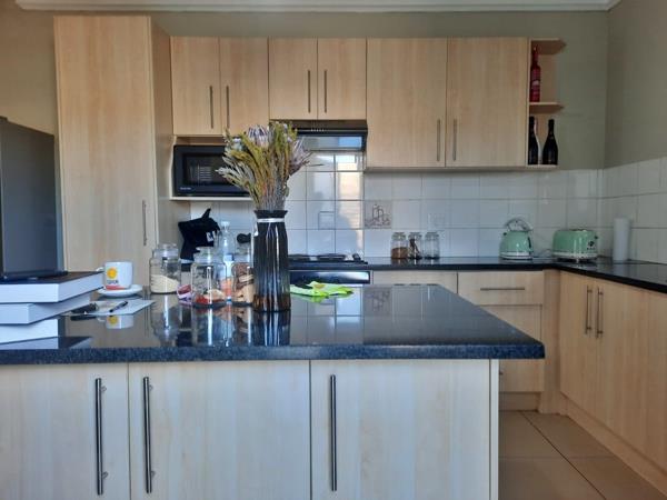 Three spacious en-suite bedrooms with built-in cupboards, tiled and offers stunning views from the balconies. Private garden, with built-in braai.