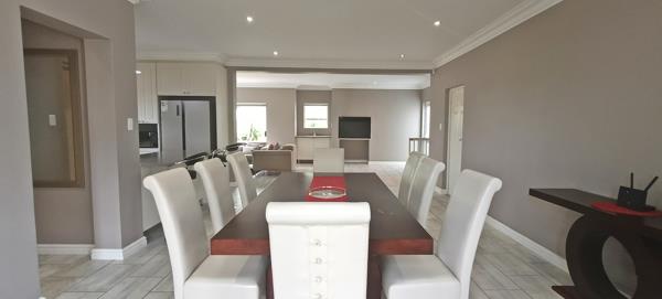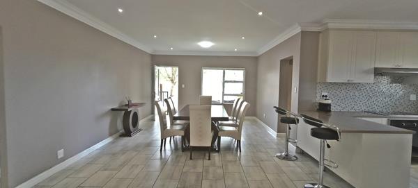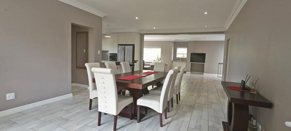 Living Spaces: A spacious living area that flows seamlessly into a dining area, complete with a built-in braai, perfect for hosting gatherings.